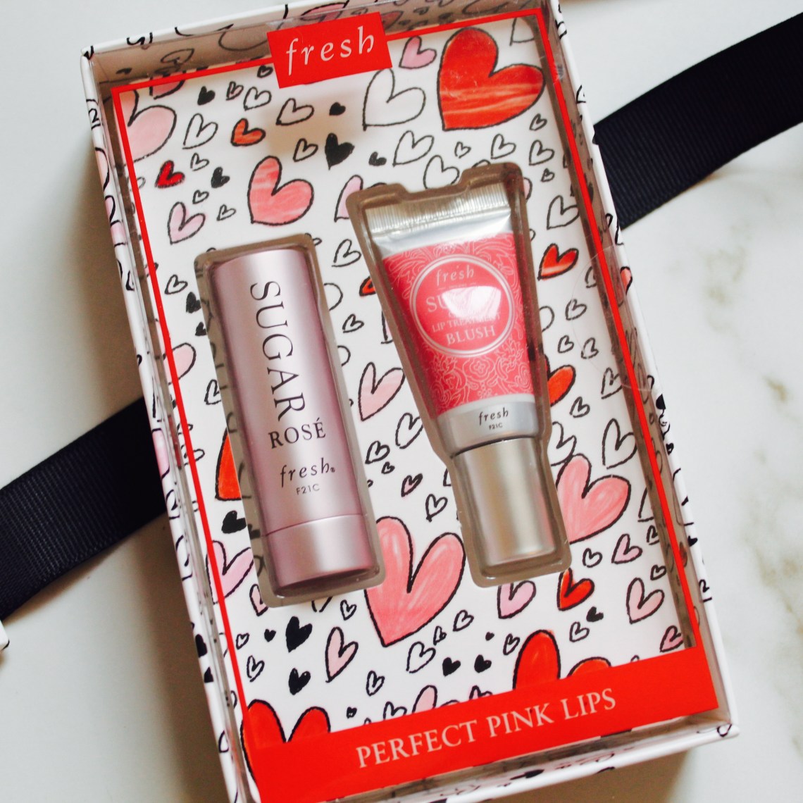 Floating hearts decorate this skin and lip gift set with can’t-live-without favorites adored by Fresh fans all over the world. Skin feels clean and hydrated, while lips are left nourished for up to 24 hours.