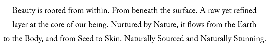 There is such a beautiful mood to each product. From Packaging to More importantly – what’s on the inside. There is an Earthy yet ethereal beauty that longs to be discovered.